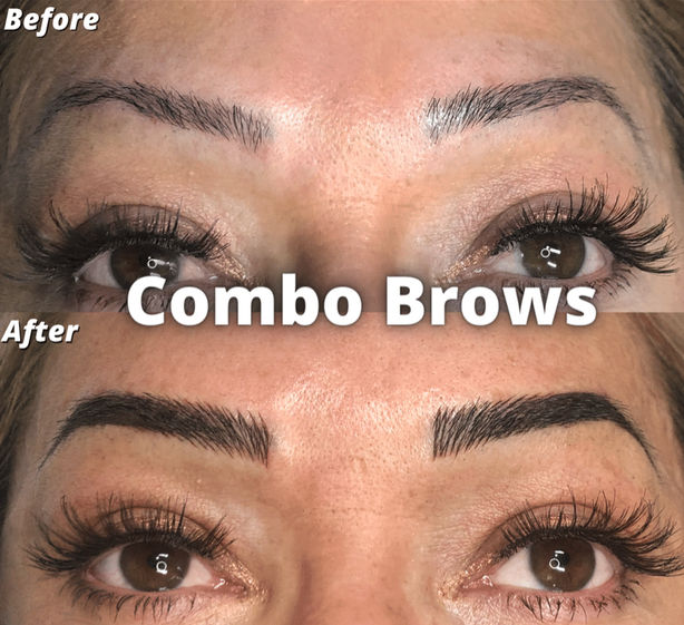 Combination brows blend the best of both worlds by incorporating techniques from microblading and shading. This method combines the detailed, hair-like strokes of microblading with a soft, powdered effect from shading to create a fuller and more defined eyebrow.